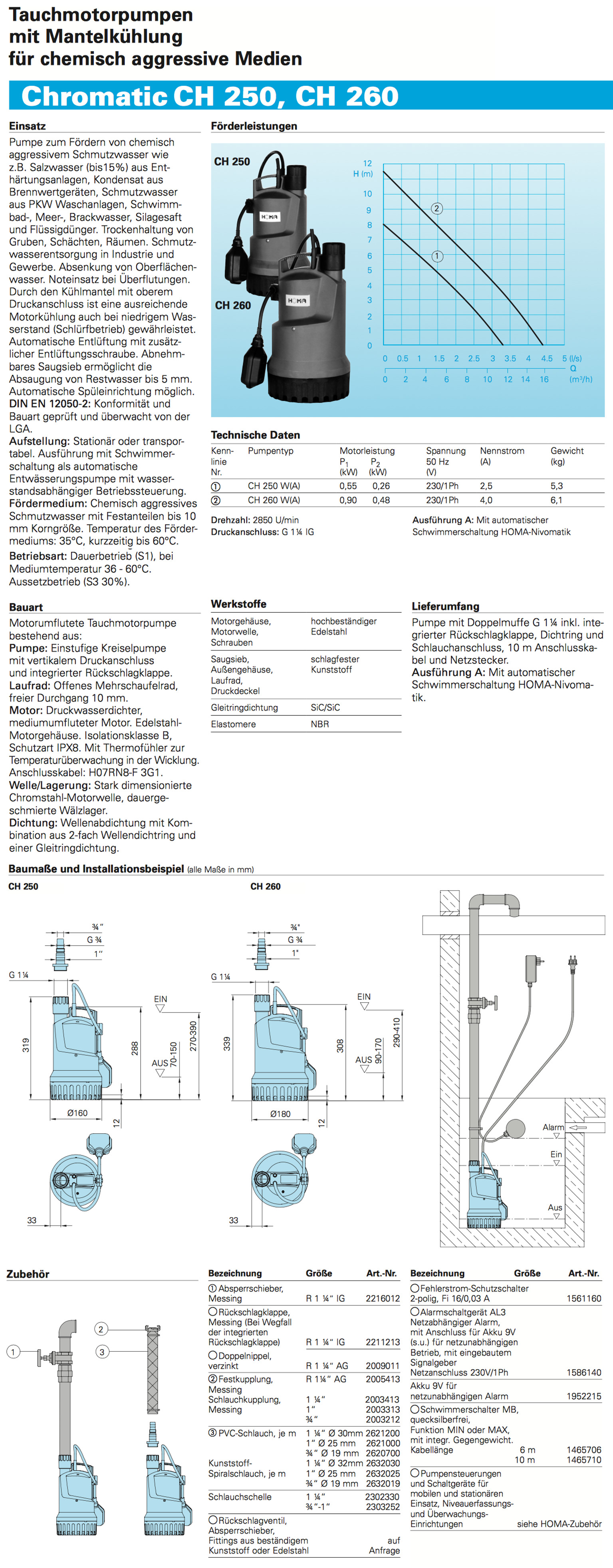 HOMA CROMATIC CH 250 WA mit Schwimmerschalter