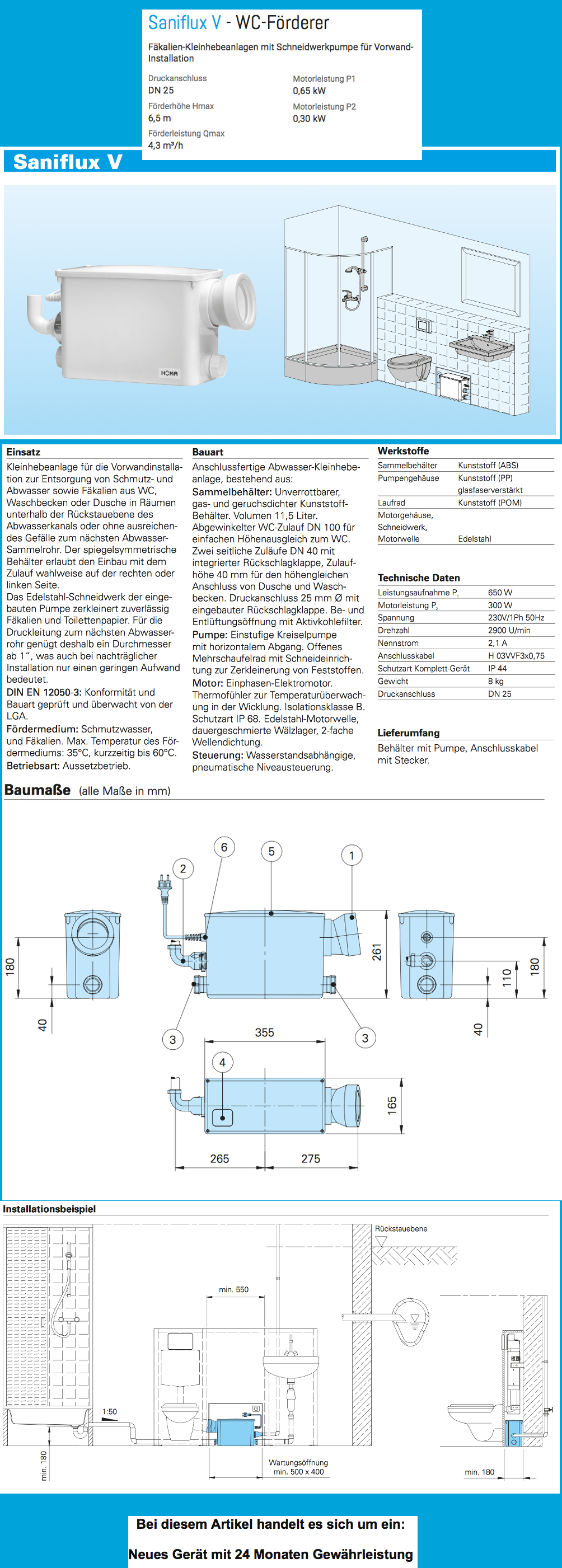 HOMA WC Förderer Saniflux V für die Vorwand-Installation